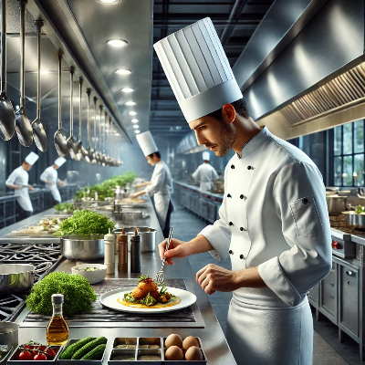 - 조리 기술 익히기: 칼질, 재료 손질, 소스 만들기 등 기본 기술을 완벽히 익히세요.